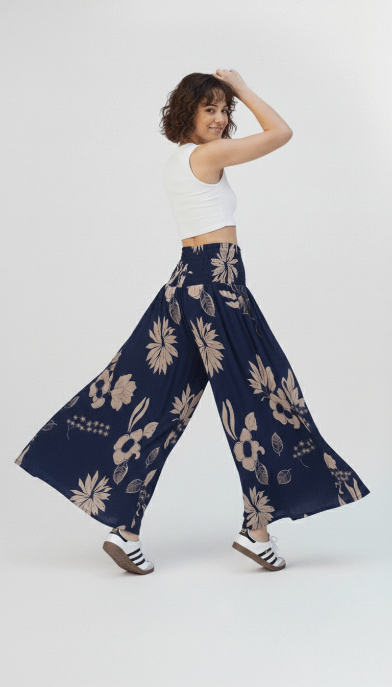 Está hecho en rayón viscosa, una tela suave, fresca y con caída natural que se mueve contigo.